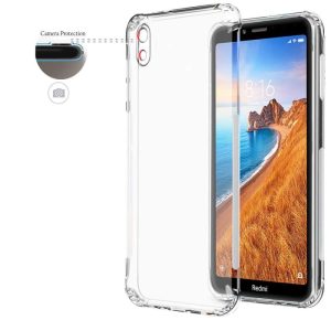 Slim transparent TPU case for Redmi 7A with shock absorption and raised screen protection.